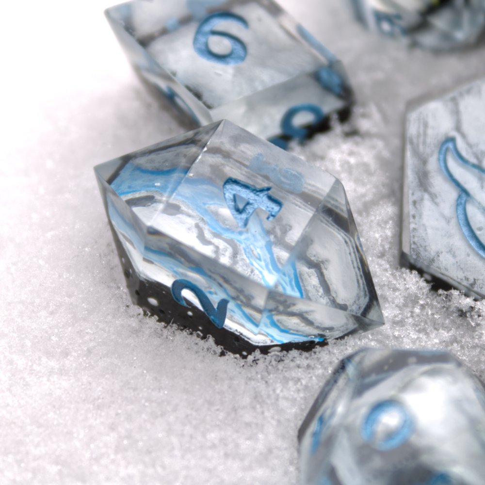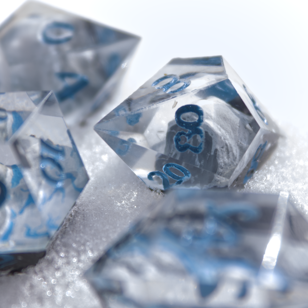 All my dice are custom designed and handcrafted, making them 100% unique. Each dice is individually molded and polished so that no two dice are ever the same. This also acknowledges that our dice have the occasional small imperfections such as scratches and bubbles, adding to their authenticity.