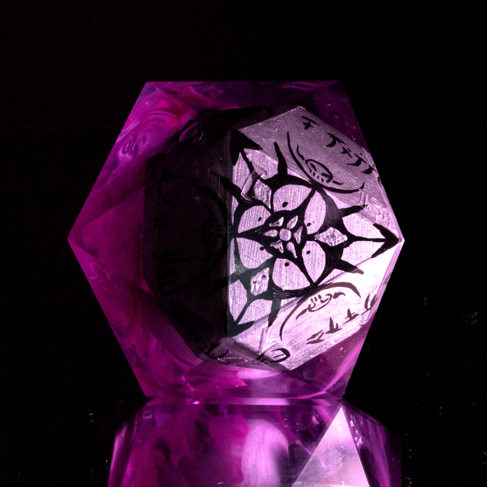All our dice are custom designed and handcrafted, making them 100% unique. Each dice is individually molded and polished so that no two of our dice are ever the same. This also acknowledges that our dice have the occasional small imperfections such as scratches and bubbles, adding to their authenticity.